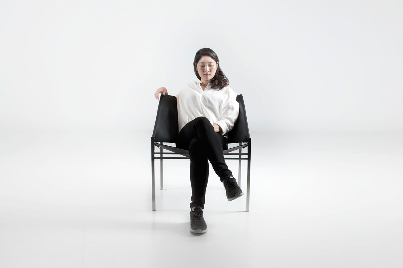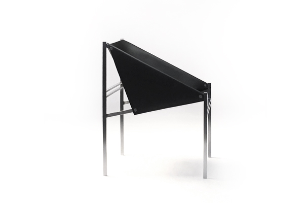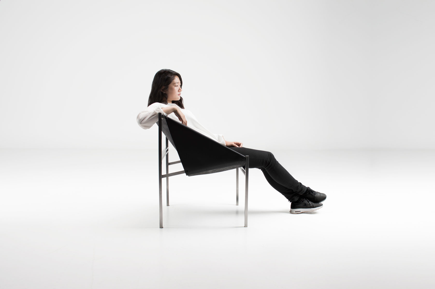 The backrest and seat of this easy chair are crafted from a single piece of leather folded and wrapped around a steel frame.